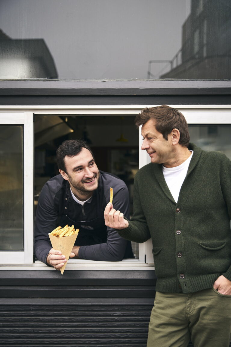 Émincez finement les courgettes dans la longueur à l’aide d’un couteau économe. Faites de même pour le fenouil. Assaisonnez-les d’huile d’olive, de jus de citron, de sel et de poivre. Ajoutez quelques feuilles d’estragon.